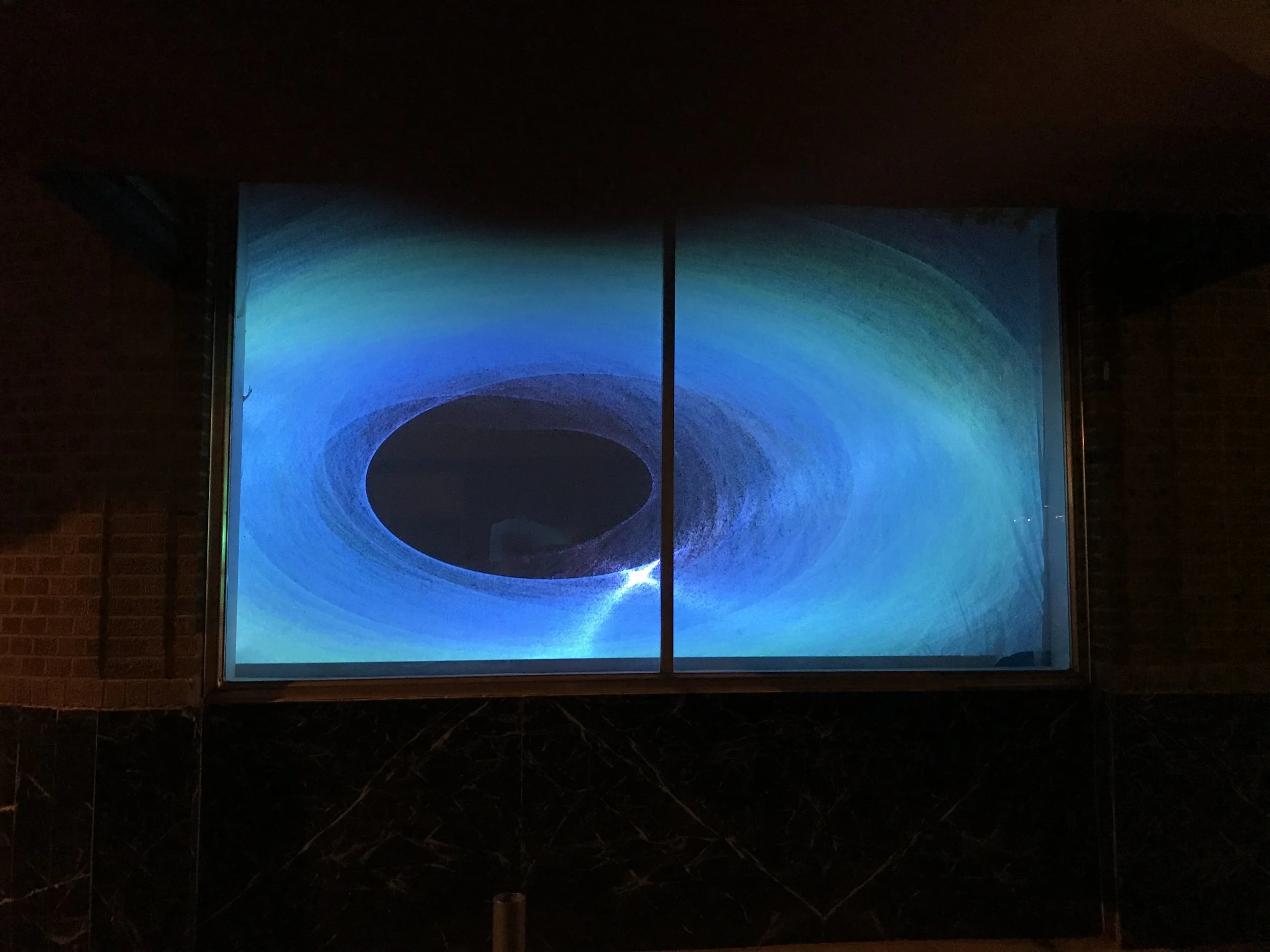 In the spirit of the SOMOS ABQ event in Albuquerque this fall, Electric Playhouse Studios projected a omputational art piece in the windows of its studio for all of the downtown visitors to check out. The piece ebbs and flows through an ongoing mathematical process that augments color, shape and location smoothly to create a unique visual creation.